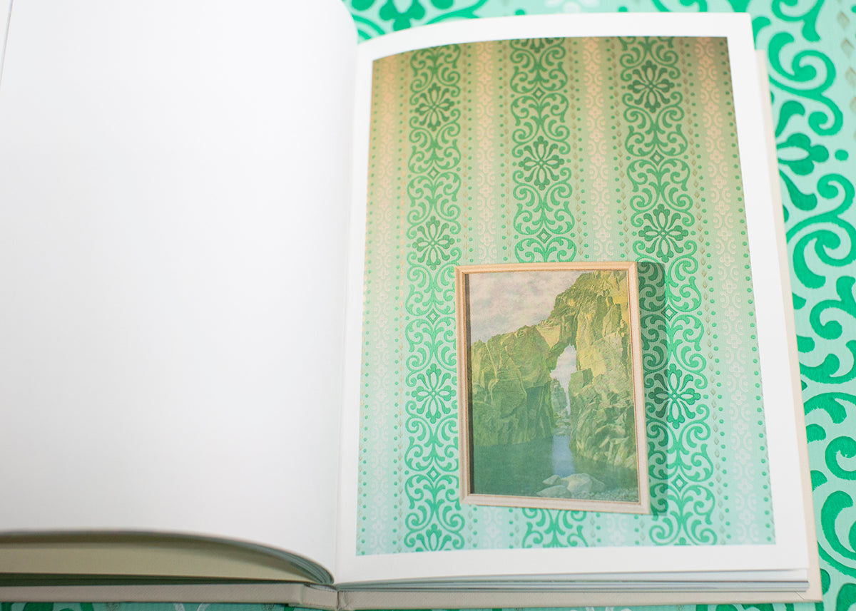 I found it in a Hackney charity shop and took it back to my small artist studio, where it began to resonate. Part still life, part landscape and part found imagery this series has evolved to form a cryptic story, set within a claustrophobic domestic stage.